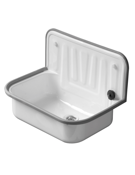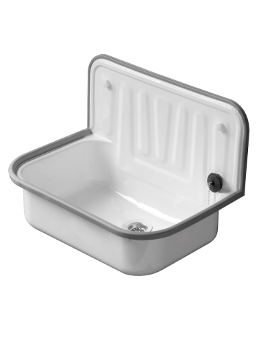 IS Stahl-Ausgussbecken mit Rückwand weiss Email 495 x 370 x 335 mm