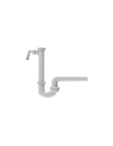 Röhrensifon mit Abgang DN50, Kugelgelenk, höhenverstellbarem Tauchrohr mit Anschlussgewinde 6/4' und rückflussgesichertem Waschgeräteanschluss 3/4'