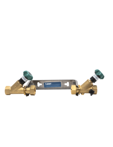 - mit fix eingedichteten Freistromventilen - verzinkter Stahl-Bügel nach vorne offen - Erdungsschraube, Befestigungsschrauben - Freistromventil und Rückflussverhinderer - mit Absperrung RMA-KFR und Entleerung - Längenausgleichsstück